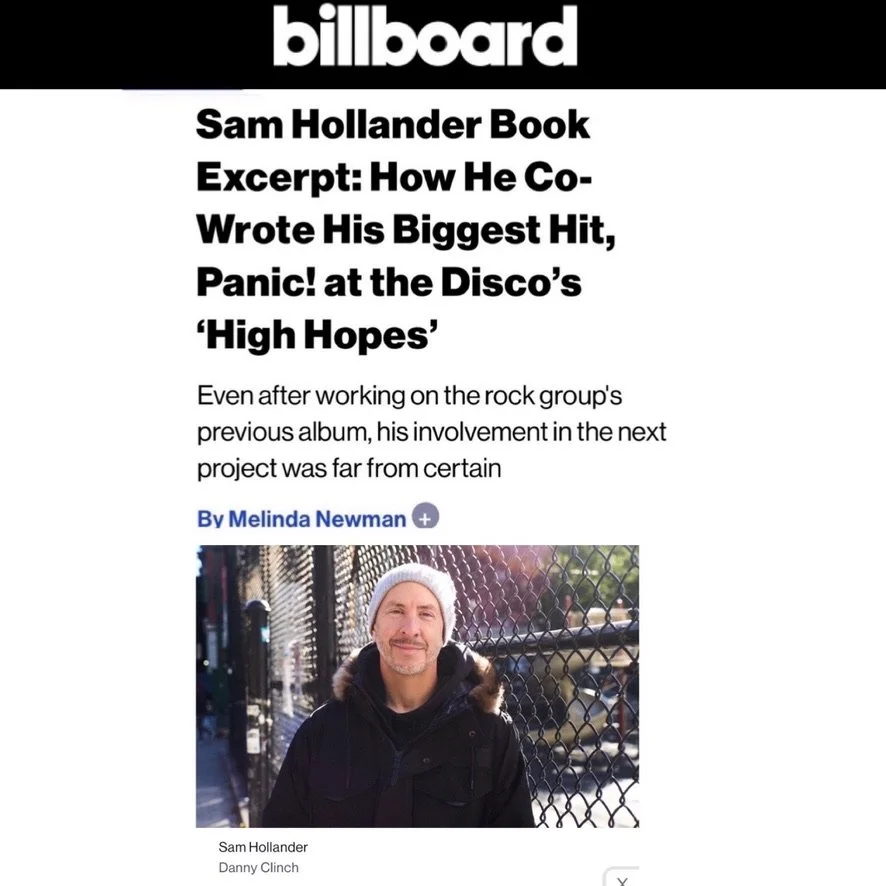 Sony/ATV Music Publishing has signed songwriter Sam Hollander to a worldwide futures deal. The NYC native is coming off the success of a co-write credit for the Panic! at the Disco worldwide hit "High Hopes," which reached No. 4 on the Hot 100 in 2018.